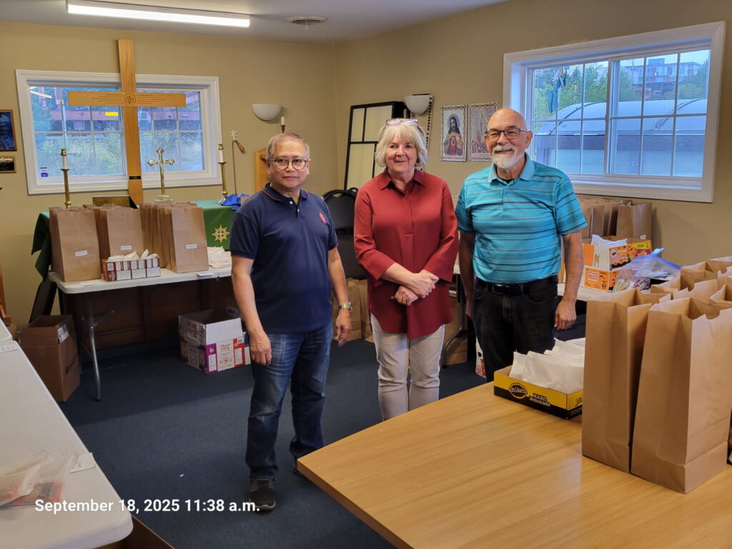 Thanks to a dedicated team of volunteers, the lunches are planned, produced, and delivered at scheduled pick-up times at the parking lot beside the Mission building.